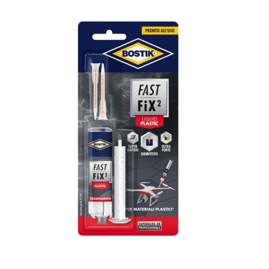 - Fast Fix² Liquid Plastic è un veloce e forte adesivo di riparazione bicomponente, riempitivo a base di cianoacrilato.