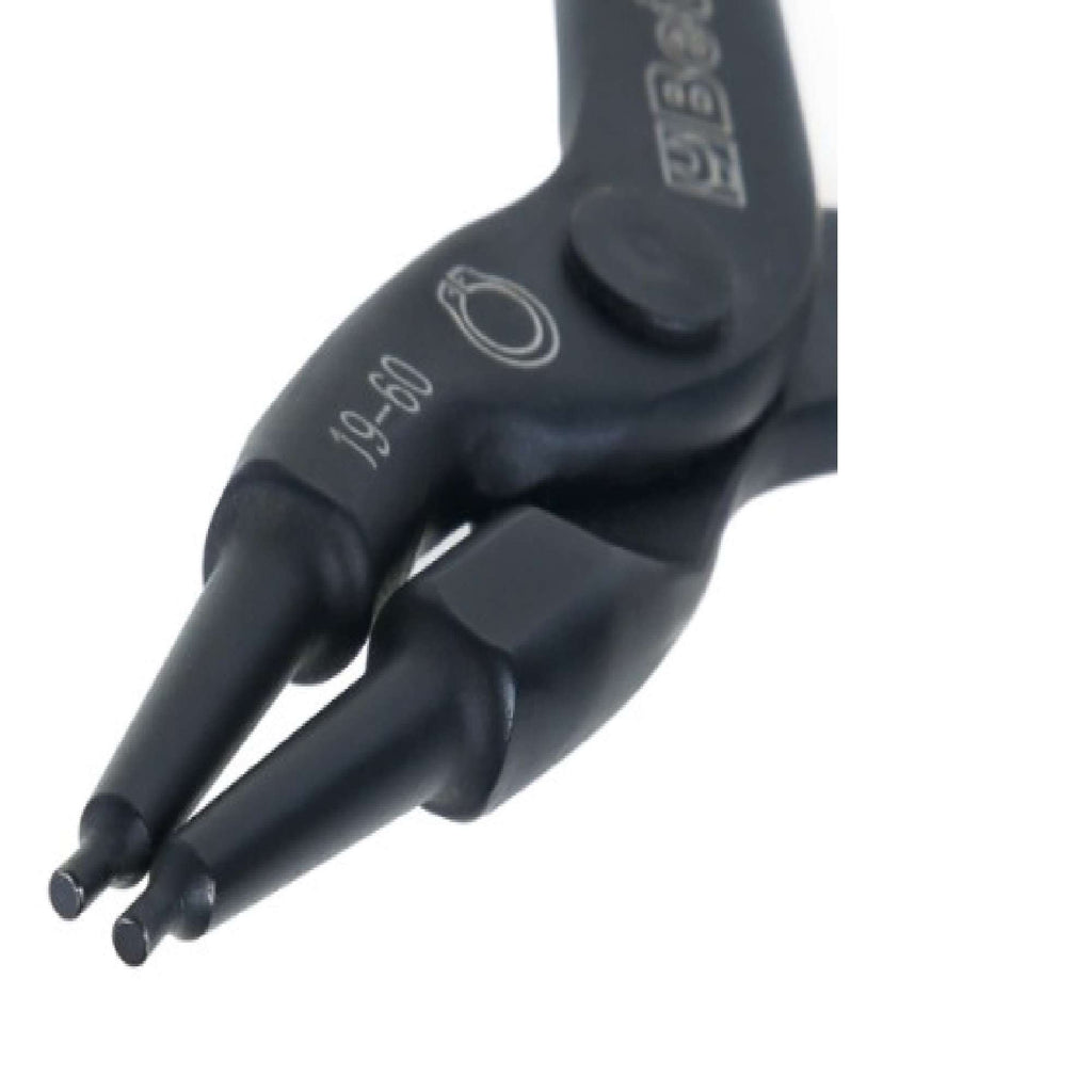 La pinza seeger Beta 1036 è realizzata in acciaio per molle, materiale che garantisce un'ottima resistenza alla rottura. Per dare ulteriore robustezza e durevolezza alla pinza, i becchi dritti e le punte vengono stampati in un corpo unico. Le punte a doppio cono presentano una leggera inclinazione verso l'esterno per avere una migliore tenuta dell'anello di sicurezza e facilitare le operazioni di montaggio e smontaggio.