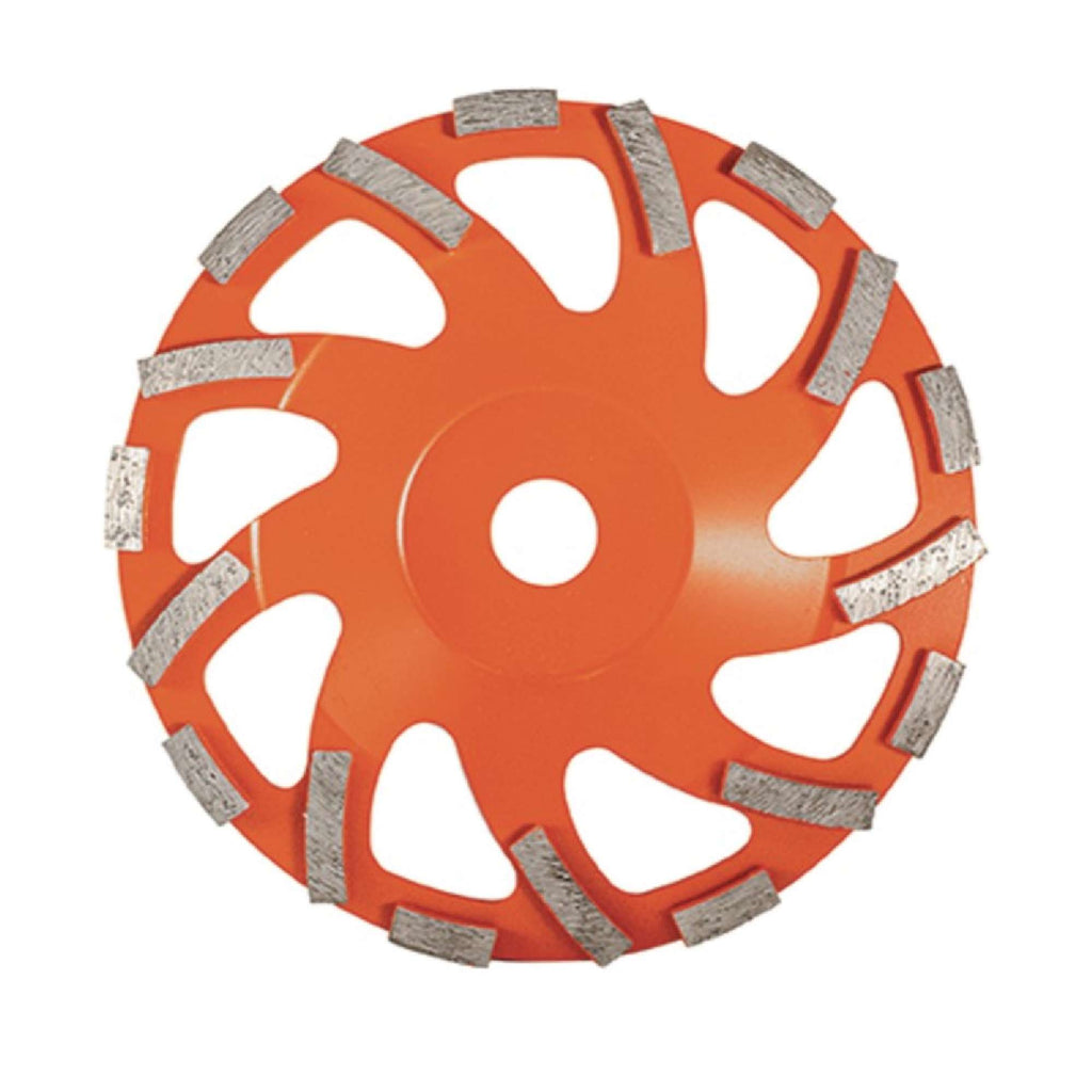Platorello diamantato per cemento con un elevato numero di aperture sul supporto in acciaio che conferiscono un ottimo raffreddamento e un'efficace rimozione della polvere.