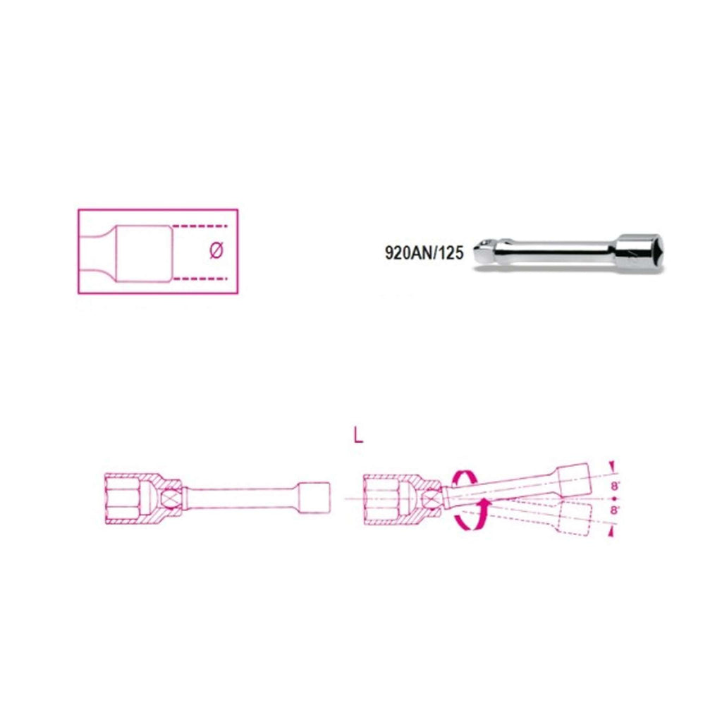 Prolunghe con attacchi quadri maschio e femmina 1/2" angolari, cromate