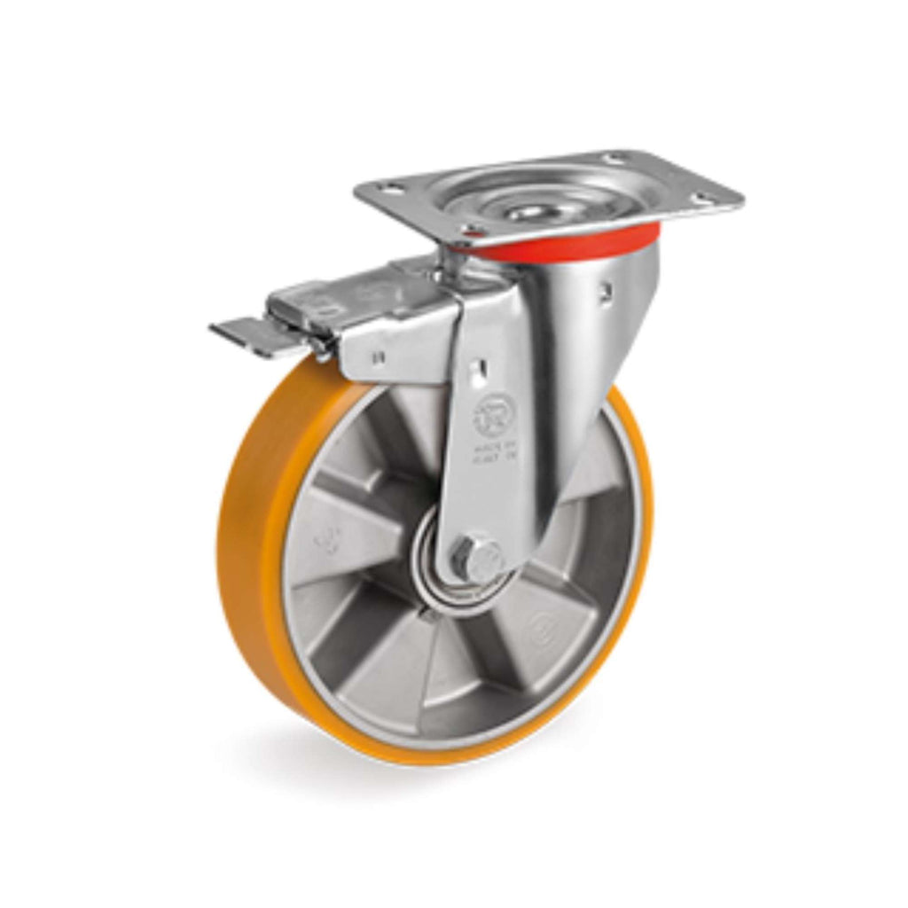 Ruote in poliuretano "TR", nucleo in alluminio, supporto rotante piastra NL freno anteriore