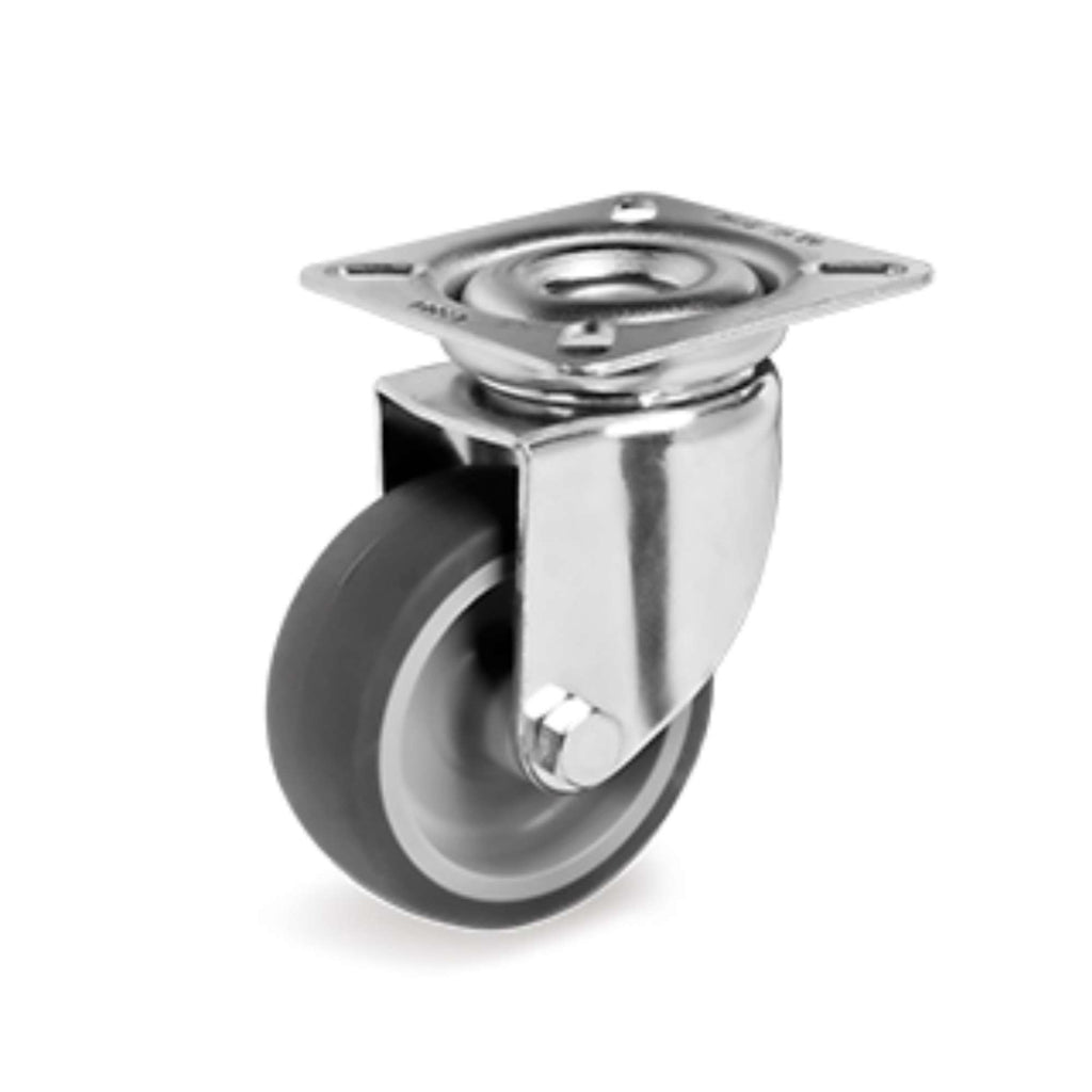 Ruote in gomma termoplastica antitraccia grigia, durezza 80 +/- 4 Shore A; nucleo in polipropilene