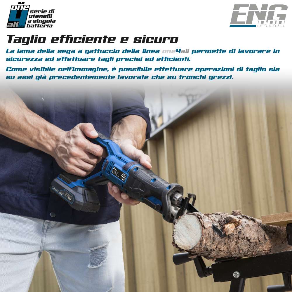 Il Seghetto a Gattuccio ENG PRO è un membro della nostra rivoluzionaria Linea ONE4ALL, che offre la versatilità di una singola batteria compatibile con tutti gli elettroutensili ONE4ALL.
