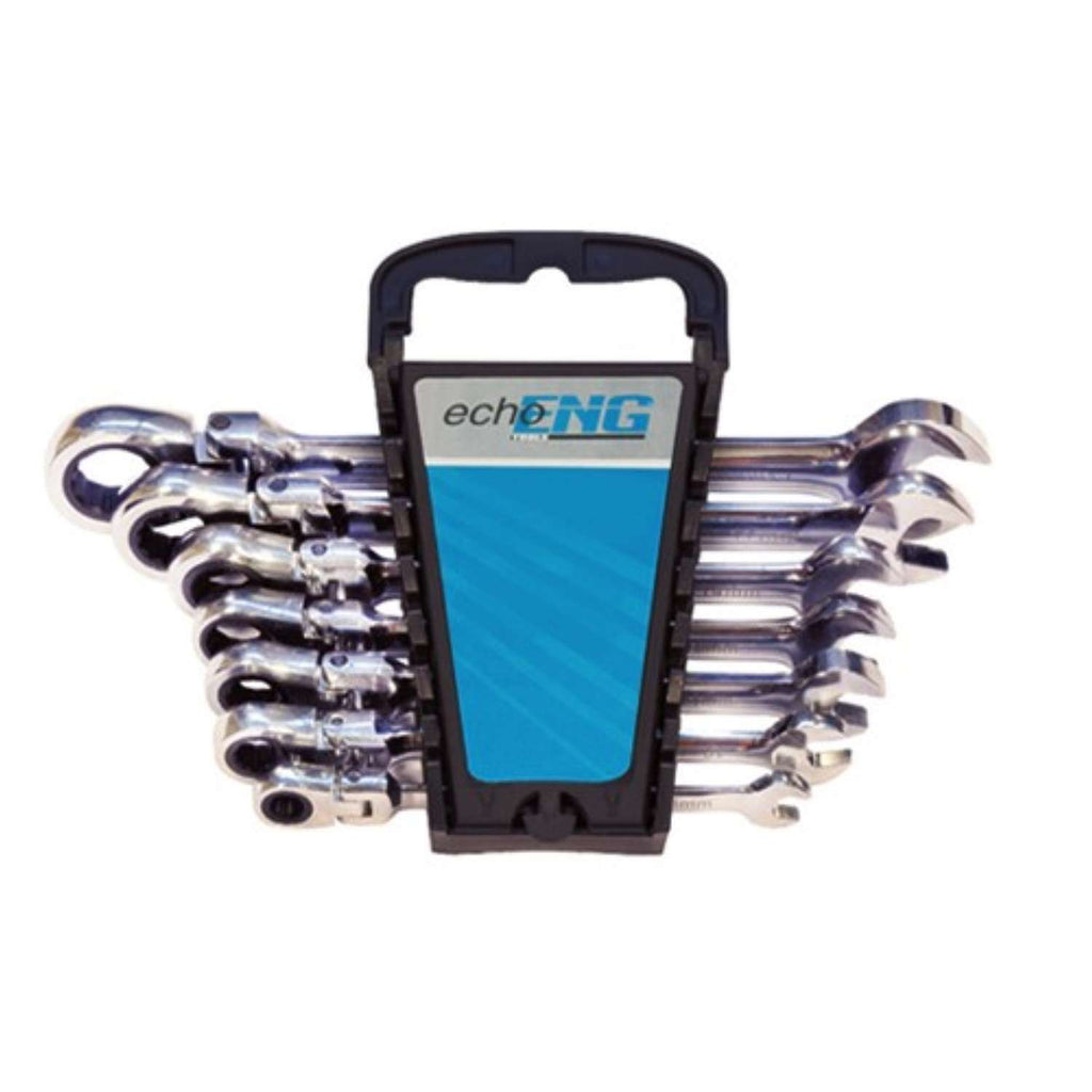 Serie set chiavi combinate specchio cricchetto snodabile 7 - 10 pz 8 - 22 mm