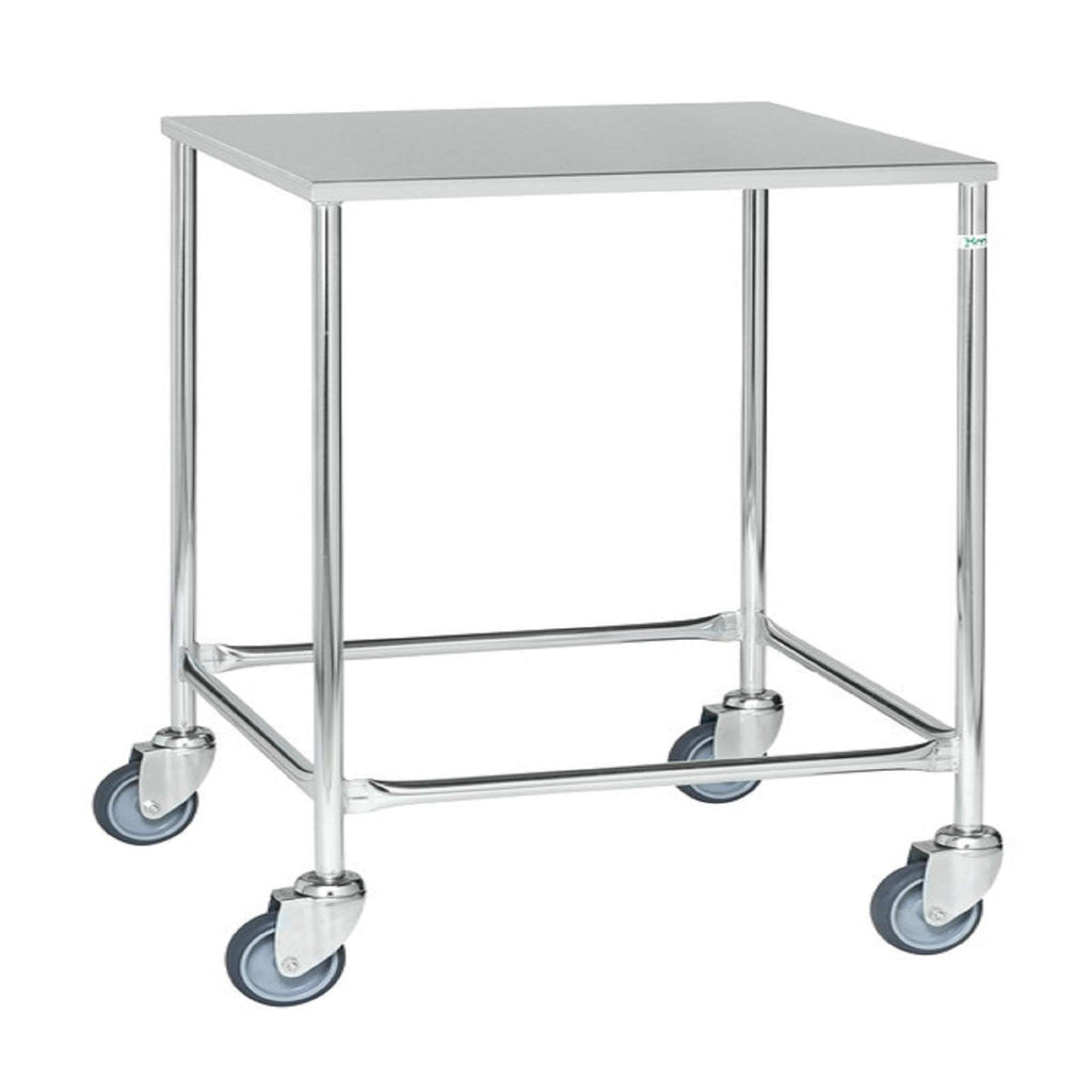 Carrello elegante e completamente saldato. Dotato di ripiani in truciolato ricoperti con lamiera in acciaio inox. Disponibile con o senza freno.