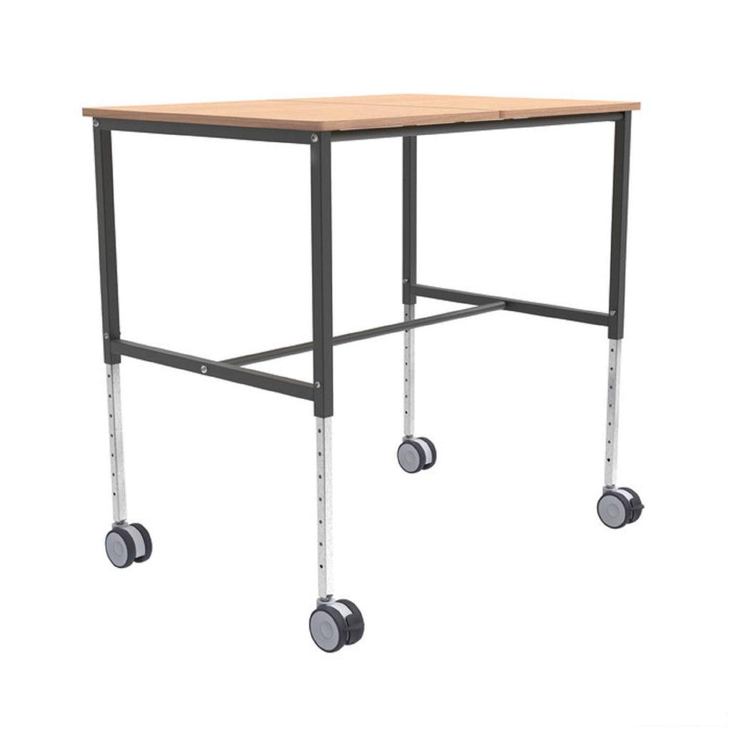 Altezza regolabile, 720-1100 con passi di 50 mm. Ruote: 4 girevoli 2 con freno. Diametro ruote: 100 mm.